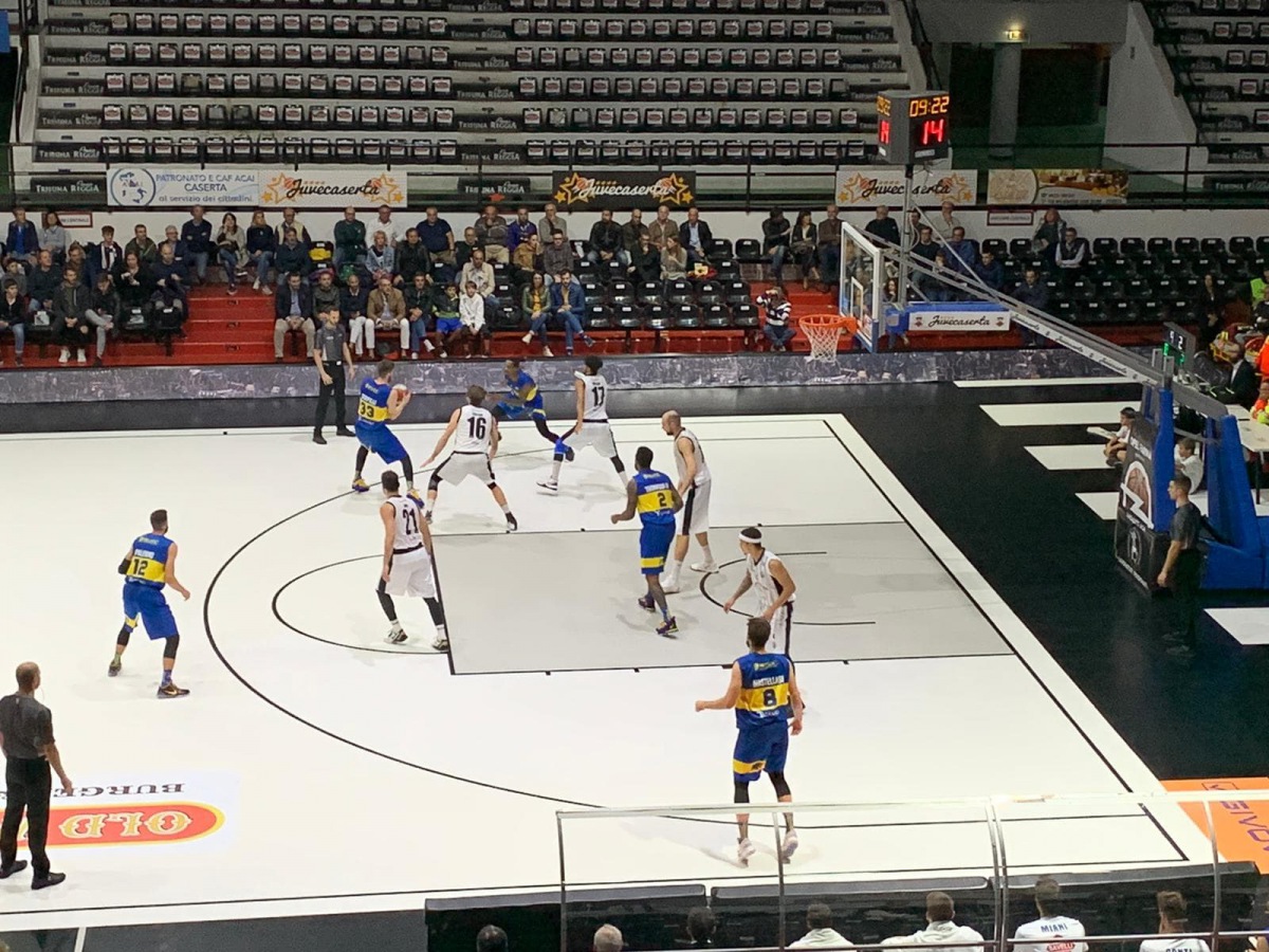 Primo quarto non bello quello tra Caserta e Montegranaro. Bianconeri molto contratti che perdono alcuni palloni a metà campo e si rendono artefici di diversi tiri sbilenchi. Gli ospiti dal canto loro non brillano ma sono più concreti, doppiando Caserta al 5’ (5-10) e al 7’ (9-18). Dalla curva s’intonano cori d’incitamento, ma il messaggio sembra recepirlo il solo Paci che entrato dalla panchina lotta sotto canestro mettendo a segno canestri importanti. Gentile prova a cambiare le carte in tavola schierando già 9 giocatori diversi nei primi 10’, che si concludono sul 15-21.