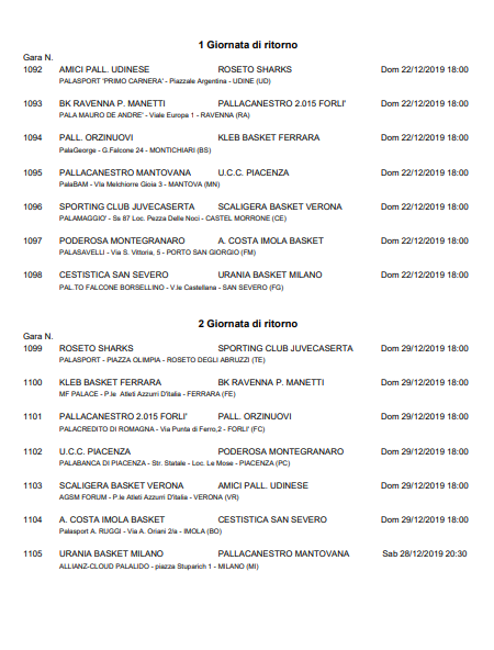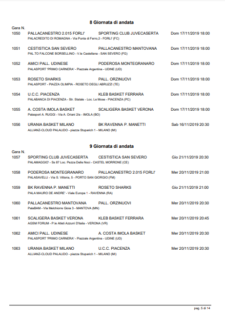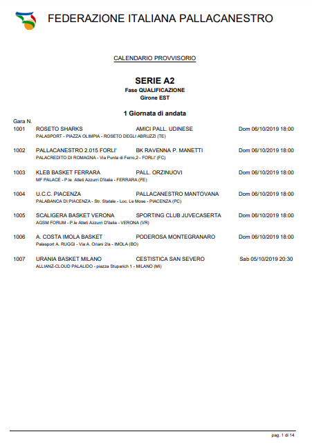 Lo apprendiamo dal sito LNP, Lega Nazionale Pallacanestro.
