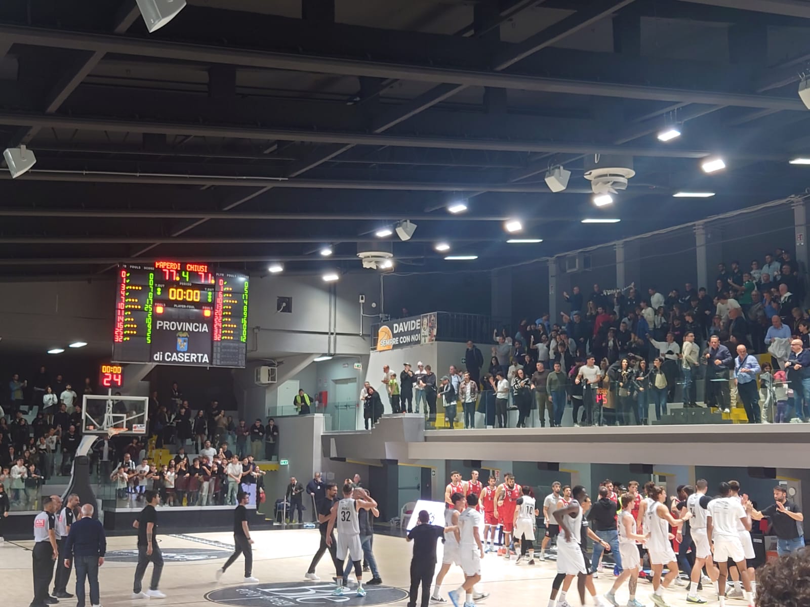 Nel terzo periodo il vantaggio dei casertani rimane costante in doppia cifra con un massimo di 19 punti, ridotti, poi, all’ultimo stop and go a 16 da un tiro sulla sirena dalla propria lunetta di Spizzichini.
