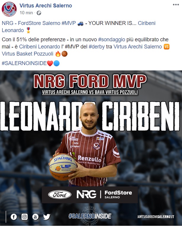 Questo quanto pubblicato dalla pagina facebook della Virtus Arechi Salerno: