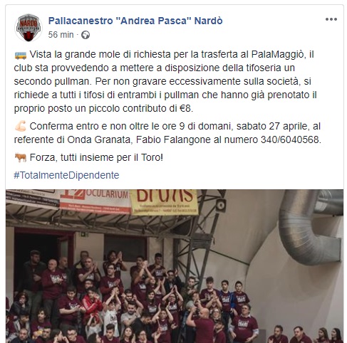 Per la sfida del PalaMaggiò tra Juvecaserta e Nardò, valida come gara 1 dei playoff, sono attesi almeno un centinaio di tifosi salentini.