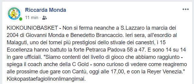 Questo quanto apprendiamo dal profilo FB di Riccarda Monda, dirigente dell'Uniobasket.