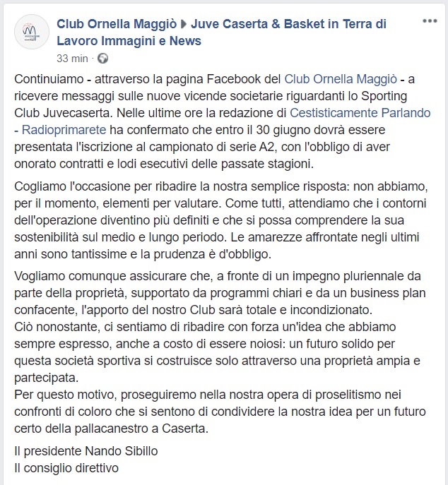 Questo quanto apprendiamo dal Club Ornella Maggiò
