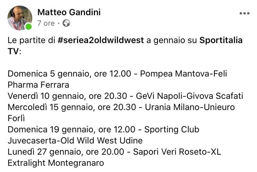 Questo quanto comunicato da Matteo Gandini, giornalista di Sportitalia
