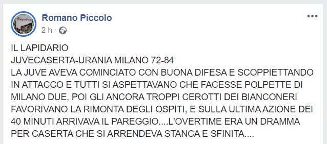 Questo quanto pubblicato sul proprio profilo FB da Romano Piccolo