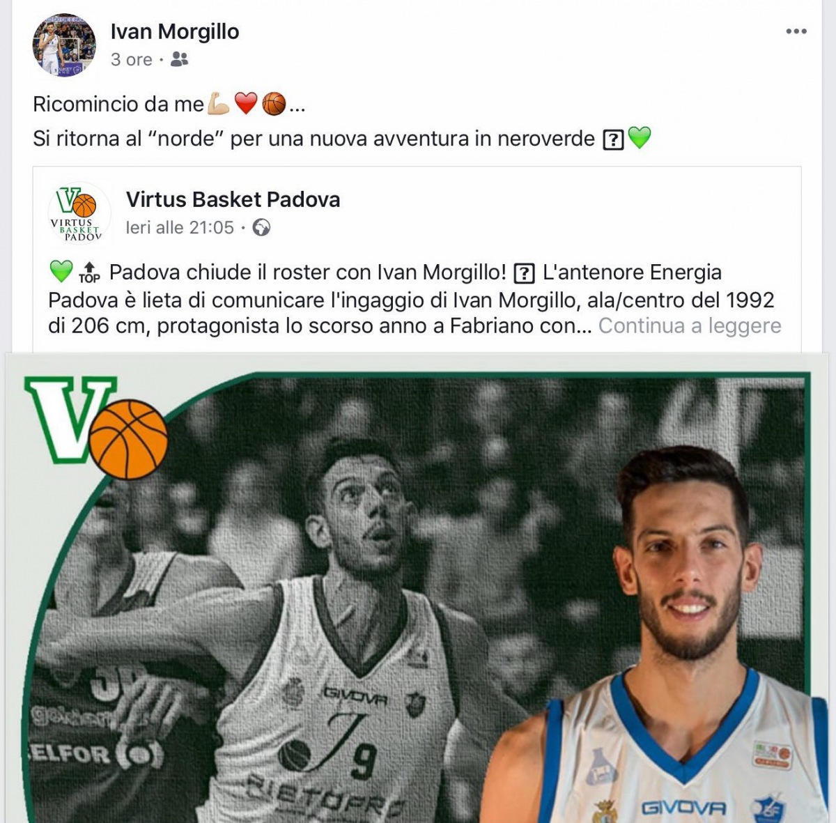 La sua avventura in maglia Juvecaserta è durata giusto qualche settimana, il tempo dell'ufficialità e poi della rescissione. Ivan Morgillo però è pronto a ripartire, a ricominciare da se stesso, come scritto sul profilo FB.