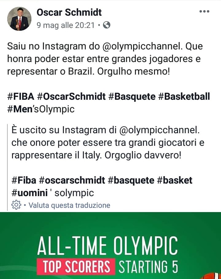 Altro attestato di stima o semplice record, fatto sta che O' Rey Oscar Schmidt continua a far parlare di se quando si pensa ai migliori giocatori della storia della pallacanestro.