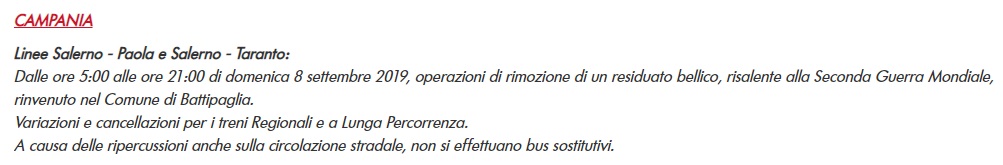 Questo quanto apprendiamo da Trenitalia