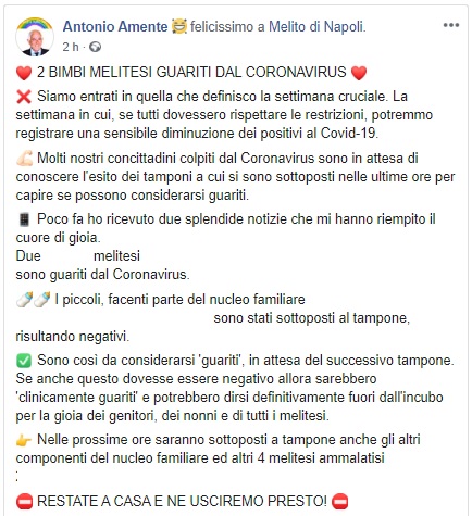 Questo quanto comunicato dal Sindaco di Melito