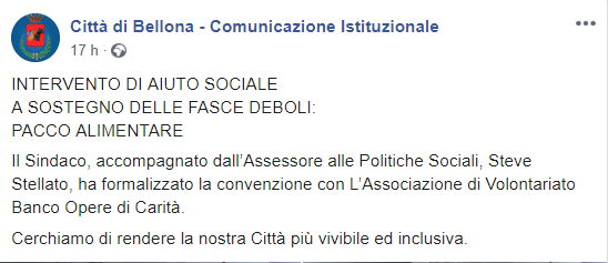 Questo il post pubblicato sulla pagina Facebook del Comune di Bellona:
