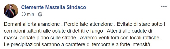 Questo quanto pubblicato sulla pagina facebook del Sindaco Mastella: