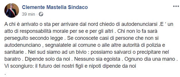 Questo quanto apprendiamo dalla pagina facebook del Sindaco Mastella: