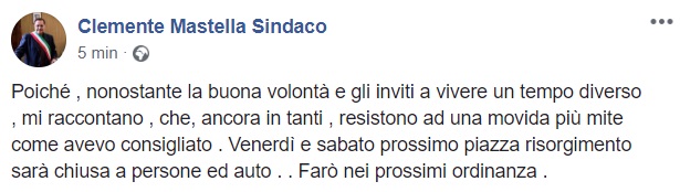 Questo quanto apprendiamo dalla pagina facebook del Sindaco Mastella: