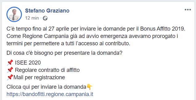 Questo quanto comunicato dall'On. Graziano