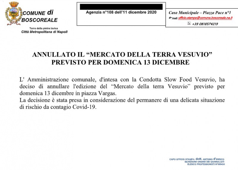 Pubblichiamo nota stampa del Comune di Boscoreale