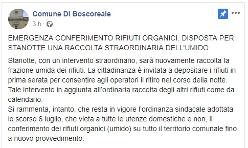 Questo il post pubblicato sulla pagina fb ufficiale del Comune di Boscoreale.