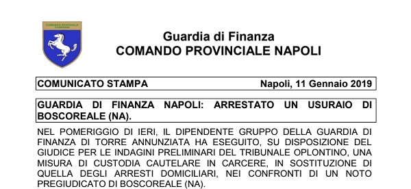 Questo il comunicato inviatoci dal Comando Provinciale della Guardia di Finanza di Napoli.
