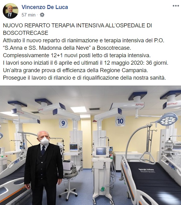 Questo quanto apprendiamo dalla pagina facebook del Pres. De Luca: