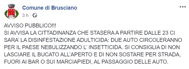 Questo quanto pubblicato dalla pagina facebook del Comune di Brusciano