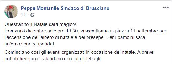 Questo il post pubblicato sulla pagina Facebook del sindaco di Brusciano Peppe Montanile: