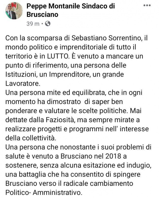 Questo quanto pubblicato sulla pagina fb del Sindaco di Brusciano