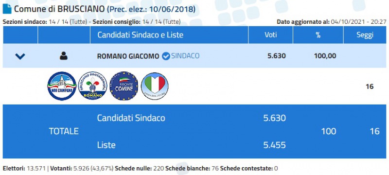 Concluso lo scrutinio a Brusciano, e Giacomo Romano è stato eletto Sindaco.