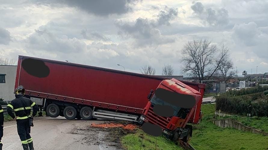 Questo parte del testo del comunicato inviatoci dal Comando Prov. Carabinieri Caserta: "Nel primo pomeriggio di oggi (ieri, ndr), (...), una squadra dei Vigili del Fuoco del Comando provinciale di Caserta, proveniente dal distaccamento di Aversa , è intervenuta (...), allertati dai passanti per un incidente stradale. Giunti immediatamente sul posto i Vigili del Fuoco hanno trovato un autoarticolato il cui conducente, durante la marcia, perdeva il controllo finendo la sua corsa di traverso occupando tutta la carreggiata, con la trattrice fuori strada. Fortunatamente nessuna vettura è stata coinvolta ed i Vigili del Fuoco, subito intervenuti sul posto, con l'ausilio di un'autogrú proveniente dal Comando di Avellino, hanno provveduto alla messa in sicurezza del veicolo ed alla successiva rimozione, liberando l'arteria stradale".