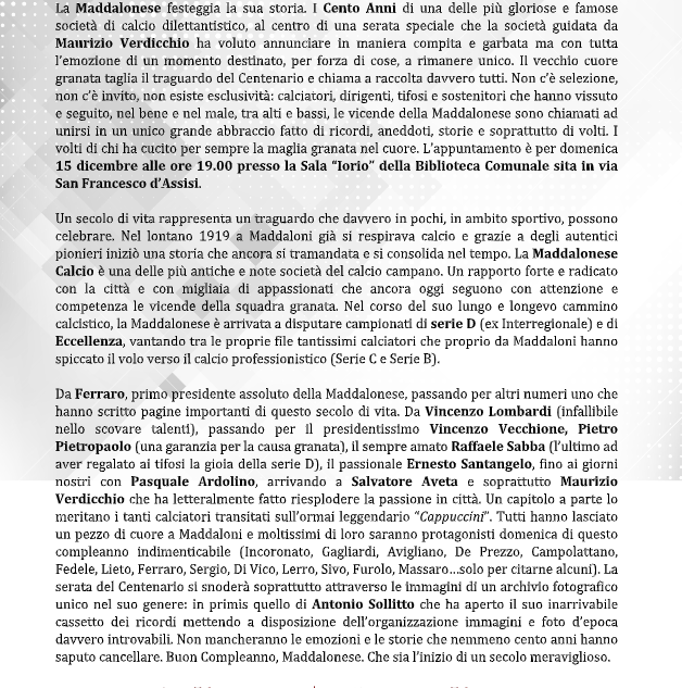 Di seguito, il testo del comunicato della Maddalonese Calcio, giunto in redazione.