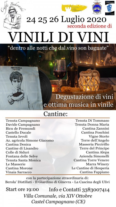 Il Presidente Provinciale di Confesercenti Caserta Salvatore Petrella ha preso parte questa sera ala Seconda Edizione della Manifestazione Vini e Vinili organizzata a Castel Campagnano dalla locale pro Loco. Tre giorni dedicati alla scoperta e alla degustazione dei vini di qualità, alla promozione delle tipicità del territorio e alla valorizzazione e riscoperta del fascino senza tempo della musica su dischi in vinile. Nella Foto che segue, il Presidente Petrella è in compagnia di Monica Matano referente di Tenuta Santa Monica.