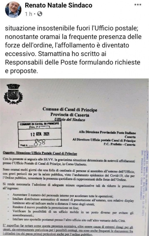 Questo quanto apprendiamo dalla pagina fb del Sindaco Natale