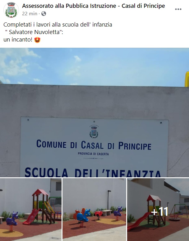 "Completati i lavori- si legge nella nota- alla scuola dell' infanzia " Salvatore Nuvoletta": un incanto!"
