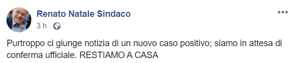 Questo quanto pubblicato sulla pagina facebook del Sindaco Natale:
