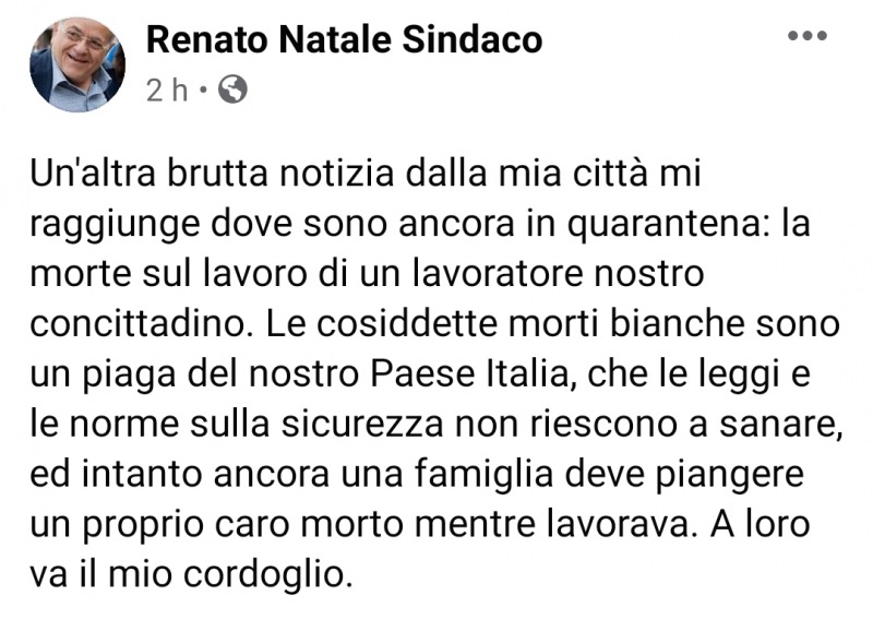 Lo apprendiamo dalla pagina Facebook del Sindaco di Casal di Principe, Renato Natale.