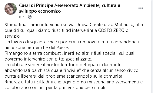 Lo apprendiamo dalla pagina Facebook Casal di Principe Assessorato Ambiente, cultura e sviluppo economico.