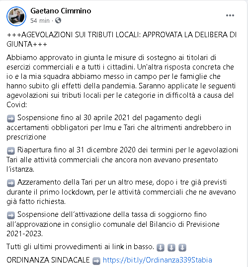 Lo apprendiamo dalla pagina Facebook di Gaetano Cimmino, Sindaco di Castellammare di Stabia.