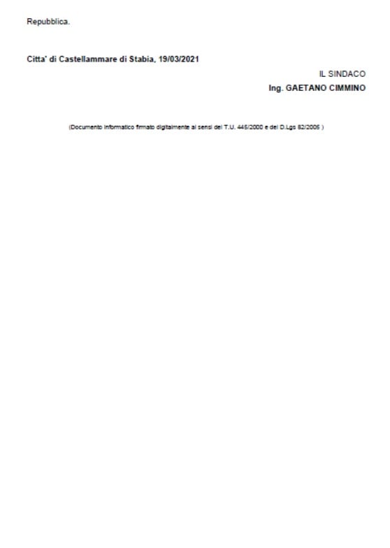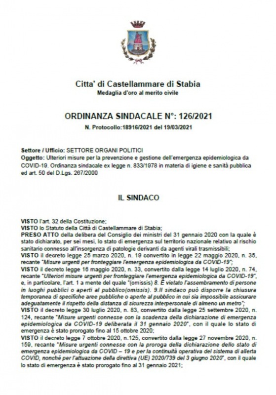Questa l'Ordinanza e quanto pubblicato sulla pagina facebook e del Comune di Castellammare di Stabia: