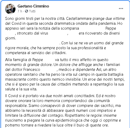 Lo apprendiamo dalla pagina Facebook del Sindaco di Castellammare d Stabia, Gaetano Cimmino.