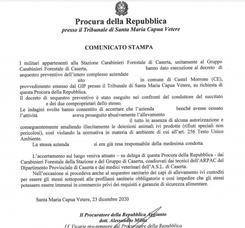 Questa parte della nota stampa del Comando Provinciale Carabinieri di Caserta: