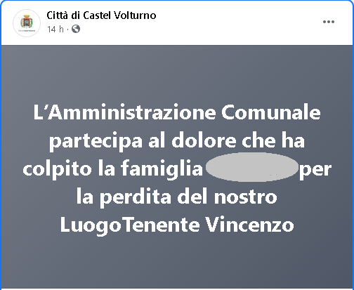 Lo apprendiamo dalla pagina Facebook Amministrazione Comunale di Castel Volturno.