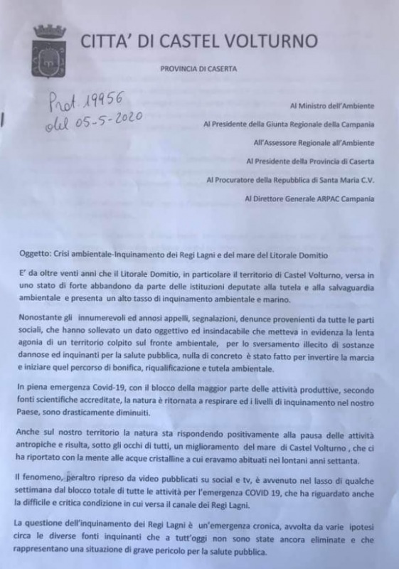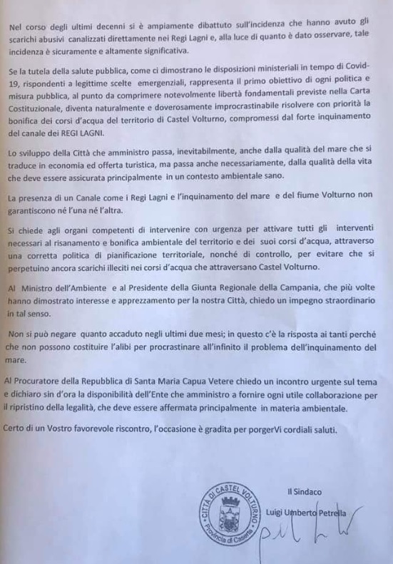 Questo quanto scritto dal Sindaco di Castel Volturno
