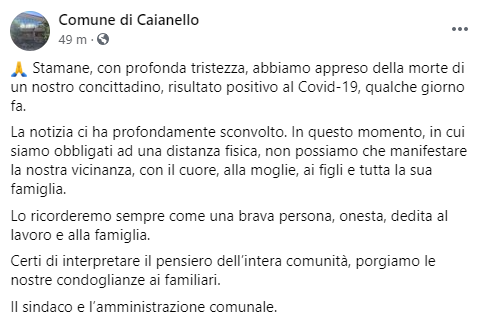 Dalla pagina Facebook dell'amministrazione comunale di Caianello