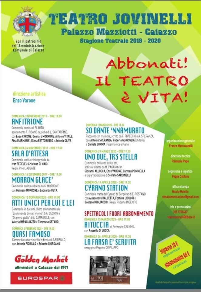 Di seguito, parte del testo del comunicato, sull'avvio della nuova stagione del teatro Jovinelli di Caiazzo, giunto in redazione: