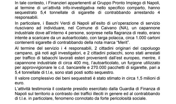 Questo il comunicato inviatoci dal Comando Provinciale della Guardia di Finanza di Napoli.