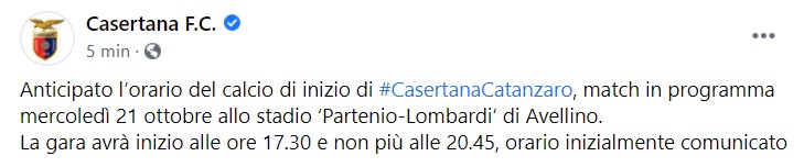 Questo quanto apprendiamo dalla pagina facebook della Casertana: