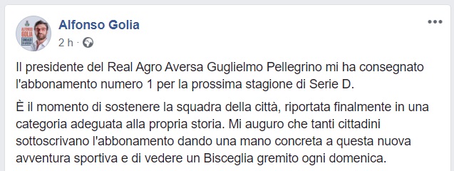 Questo quanto pubblicato dal Sindaco Golia