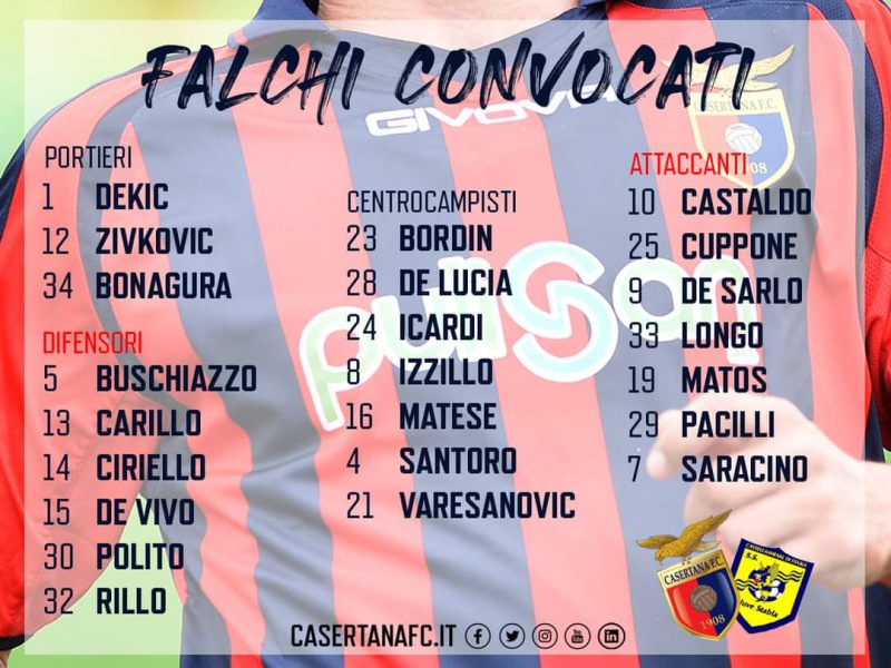 Piove sul bagnato alla Casertana in vista del derby di domani alle 12.30 al Pinto contro la Juve Stabia. "Cuppone è in dubbio - ha dichiarato mister Guidi nella conferenza pre gara - per via di una distorsione alla caviglia. Lo valuteremo domani". Alla probabile assenza del capocannoniere della squadra si aggiungono quelle sicure di Turchetta (infortuni) e Del Grosso, Rosso, Hadziosmanovic ed Avella per squalifica. Cuppone figura in ogni caso tra i convocati unitamente ai giovani Saracino e Bonacura. Di seguito la lista ufficiale dal club pochi minuti fa.