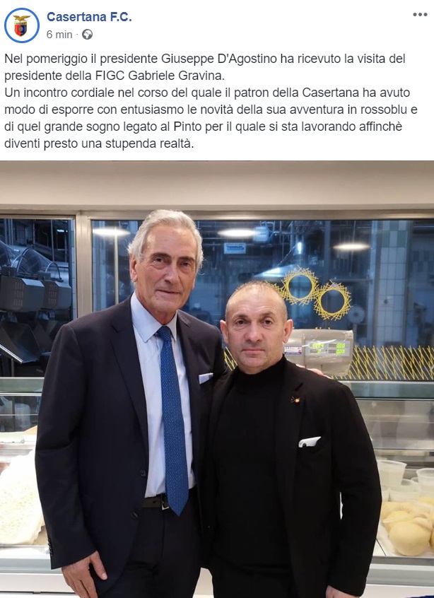 Questo quanto pubblicato sulla pagina Facebook della Casertana: