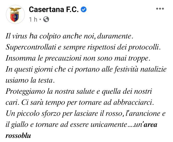 Questo quanto pubblicato sulla pagina fb della Casertana