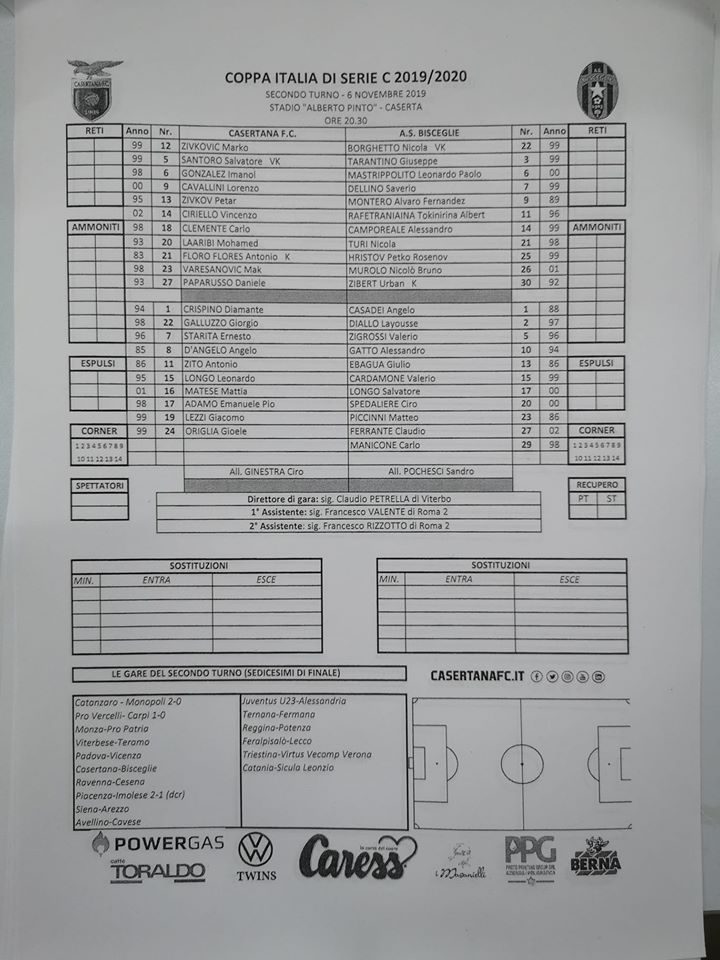 Queste le formazioni ufficiali di Casertana-Bisceglie: