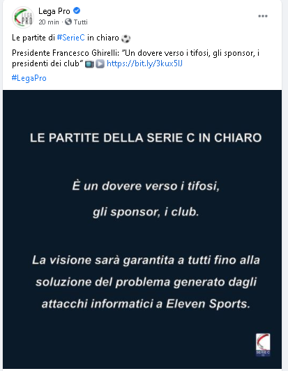 Lo apprendiamo dalla pagina Facebook Lega Pro.